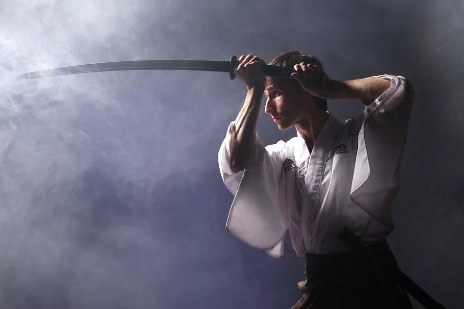 Обычно он одинаково хорошо мог фехтовать коротким (вакидзаси) или средним мечом (тиса-катана), используя технические приемы, идентичные тем, которые были разработаны для катана, хотя и адаптированные для более близкой дистанции. Он также исследовал во всех деталях стратегическую эффективность нодати, длинного меча, который обычно носили за спиной, и его рукоять выступала над плечом. Техническое совершенство кэндзюцу достигало высот бесподобной красоты и эффективности при одновременном использовании двух клинков: катана вместе с вакидзаси или тиса-катана либо в так называемом стиле фехтования двумя мечами (нито), основанном знаменитым Миямото Мусаси в его школе Нито Рю. И наконец, существовали необычайно сложные и трудные технические приемы, предназначенные для использования одного или двух мечей против нескольких противников, вооруженных мечами или копьями. Эти приемы были основаны на перемещениях круговыми движениями (тай-сабаки), среди которых доминировали скользящие повороты и вращения. Из положения стоя или подныривая под линию, описываемую оружием его противников, воин наносил рубящие удары в соответствии с зигзагообразным стилем, стилем переплетенного креста, стрекозы, водопада, восемь сторон сразу и других – все они являлись специализациями конкретных школ фехтования, которые обычно посещали только буси самых высоких рангов.