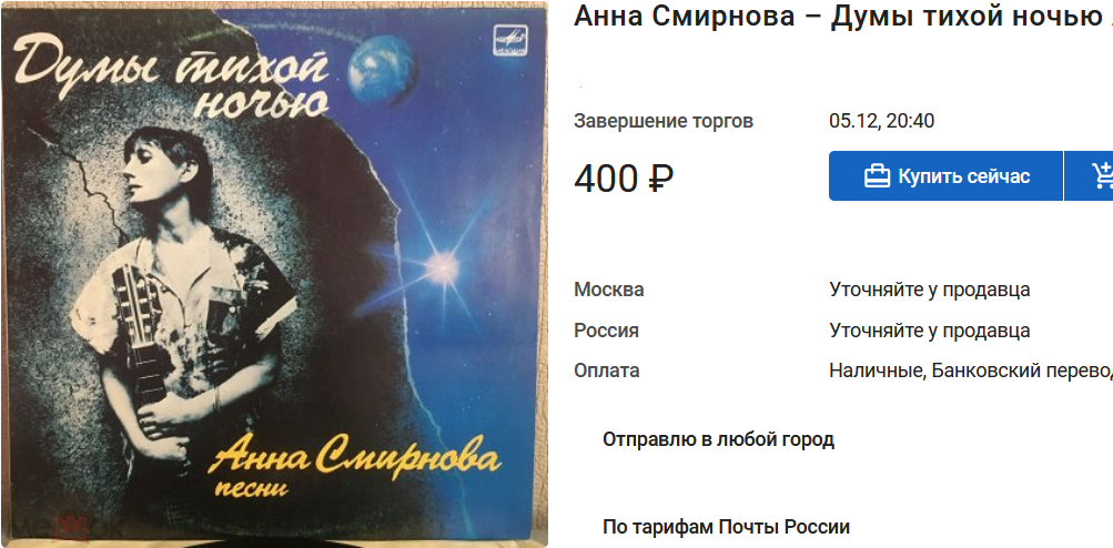 Здравствуйте! Продолжаем откапывать песни, которые давно не поют, или те, которые не находятся на первых страницах поисковой выдачи. Прячутся от нас, одним словом. Для тех, кто хочет их услышать заново через много лет, они очень дороги. Некоторые заявки я публикую вне очереди. Обычно это те, которые нашлись относительно легко и с нетерпением ждут, когда их покажут. Только сейчас вспомнила, что когда-то у меня была замечательная пластинка, купила её в конце 70-х годов. Помню, что имя исполнительницы была Анна, даже фамилию не помню. Это были очень хорошие камерные песни, типа авторских. Первая песня была "Улетели листья с тополей" на слова Николая Рубцова. Но не известная эстрадная на музыку Морозова, а удивительно нежная, исполняемая вполголоса - до сих пор звучит во мне. Как бы найти эту версию песни, да и всю пластинку? Екатерине помогает Alexey Bigbss: Это песня с пластинки 1987 года «Думы тихой ночью». Автор ролика Елена Кривенко. Авторы песни: А. Лобзов и Н. Рубцов. Светл