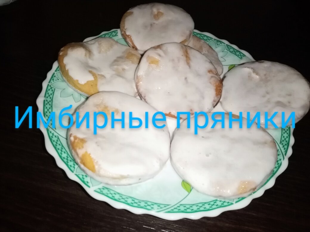 Всем здравствуйте. Сегодня мы доченькой решили приготовить имбирные пряники по рецепту указанному на этикетке бутылки молока. Готовила в основном доча и делала это в первый раз. Вот собственно сам рецепт: Ну что, поехали! Смешаем 200гр муки с 1 ч.л. разрыхлителя, 2 ч.л. молотого имбиря и 1 ч.л. молотой корицы. Далее в рецепте не написано, но я все таки растопила 100гр. сливочного масла, смешала его с 1 стаканом сахара, 3 яйцами, 2 ст.л. меда и 3 ст.л. молока. Все перемешиваем и добавляем муку со специями. Замешиваем тесто и убираем в холодильник на 2 часа. Через 2 часа вынимаем тесто, раскатываем. В рецепте указано, что раскатываем тонко, но я бы не советовала сильно тонко раскатывать, так как получится тонкий и сухой пряник. У нас формочек нет, поэтому мы просто сделали вот такие кружки. Выложили наши кружки на противень с пергаментной бумагой. Поставили запекаться в духовку на 10 минут при температуре 180 градусов. Вот что вышло: Теперь приготовим глазурь. Для этого смешаем 2 б