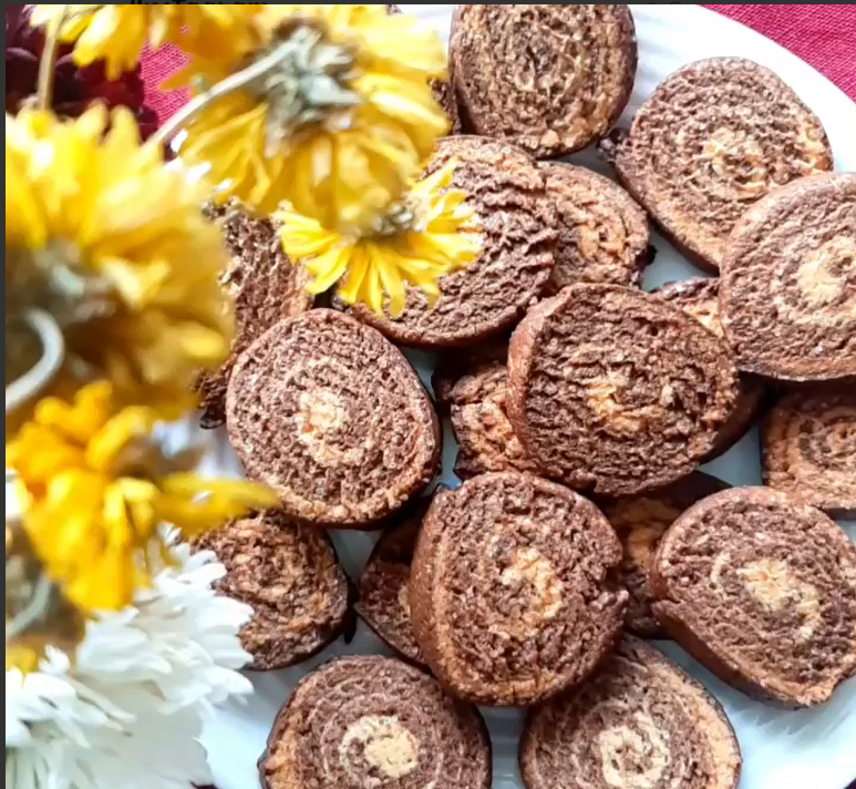 🥯Нарезаем рулет печеньками примерно по 1 см.