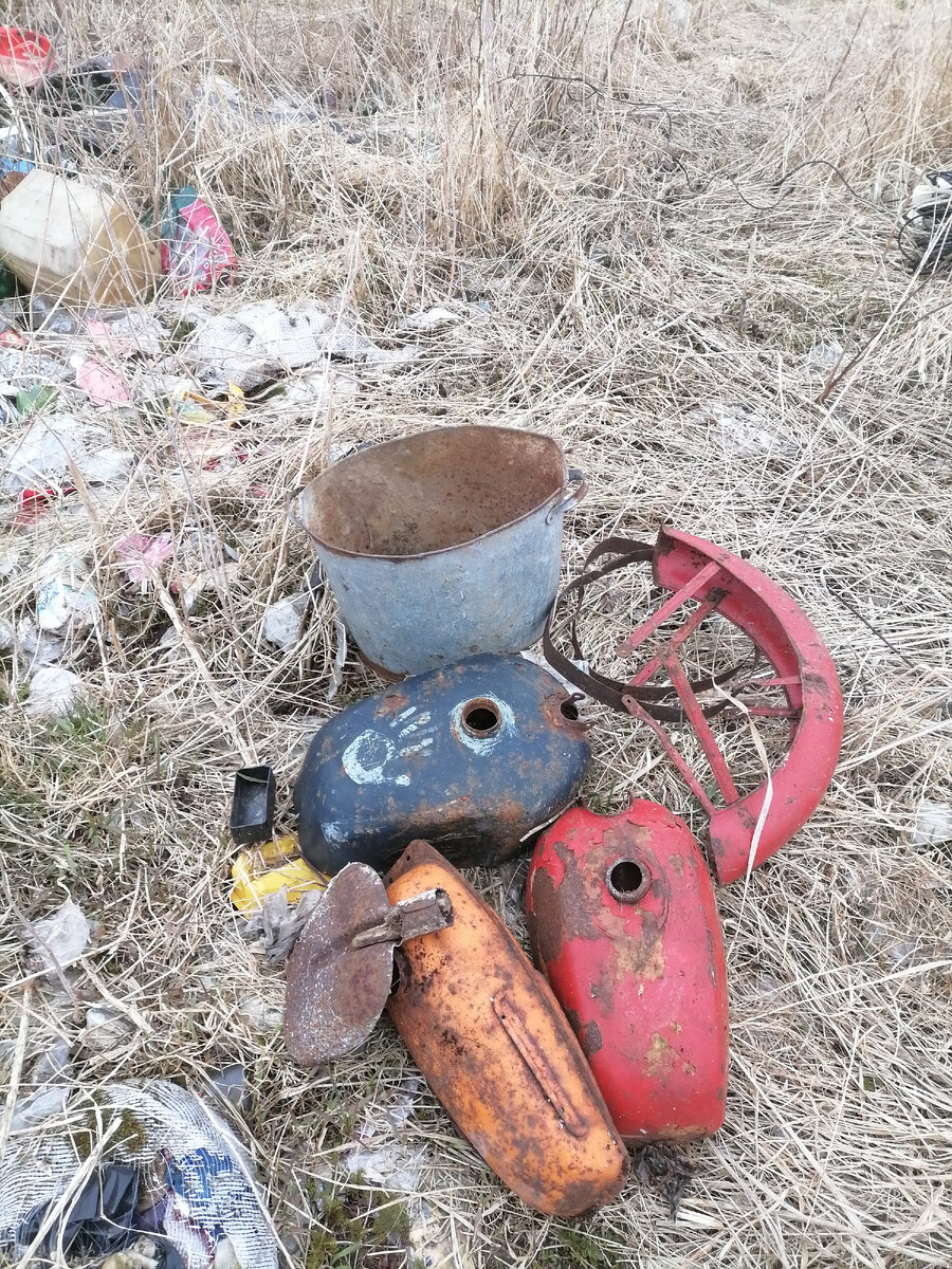 Проезажая весной в поле запремметил большую кучу мусора, кто-то скажет и что с того? Таких куч полно, щас б по помойкам шляться как бомж! Но я то знаю что порой можно найти интересные и даже полезные вещи. В этот раз нашёл запчасти для мотоциклов, лежат они там уже давно поэтомоу состояние очень печальное, большая часть только в металлолом, но например крыло ещё можно использовать! Также нашёл кабину редкой советской игрушечный машинки, пытался найти остальные части, но безуспешно...