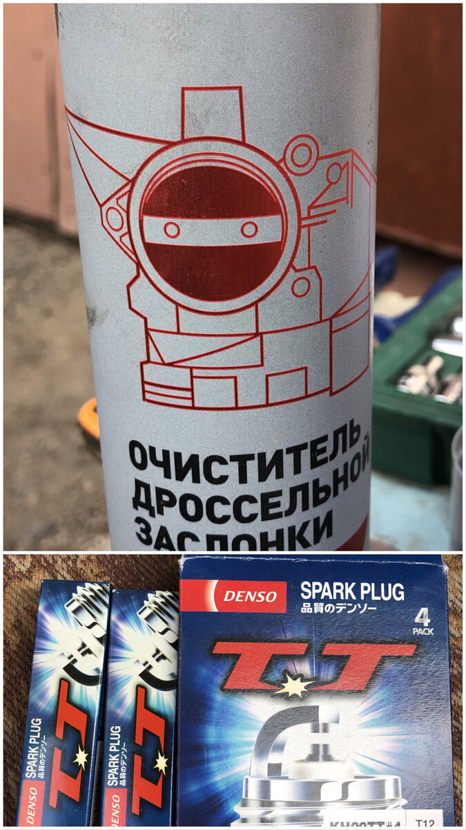 Toyota Land Cruiser Prado 120 чистка блока дроссельной заслонки и замена свечей зажигания