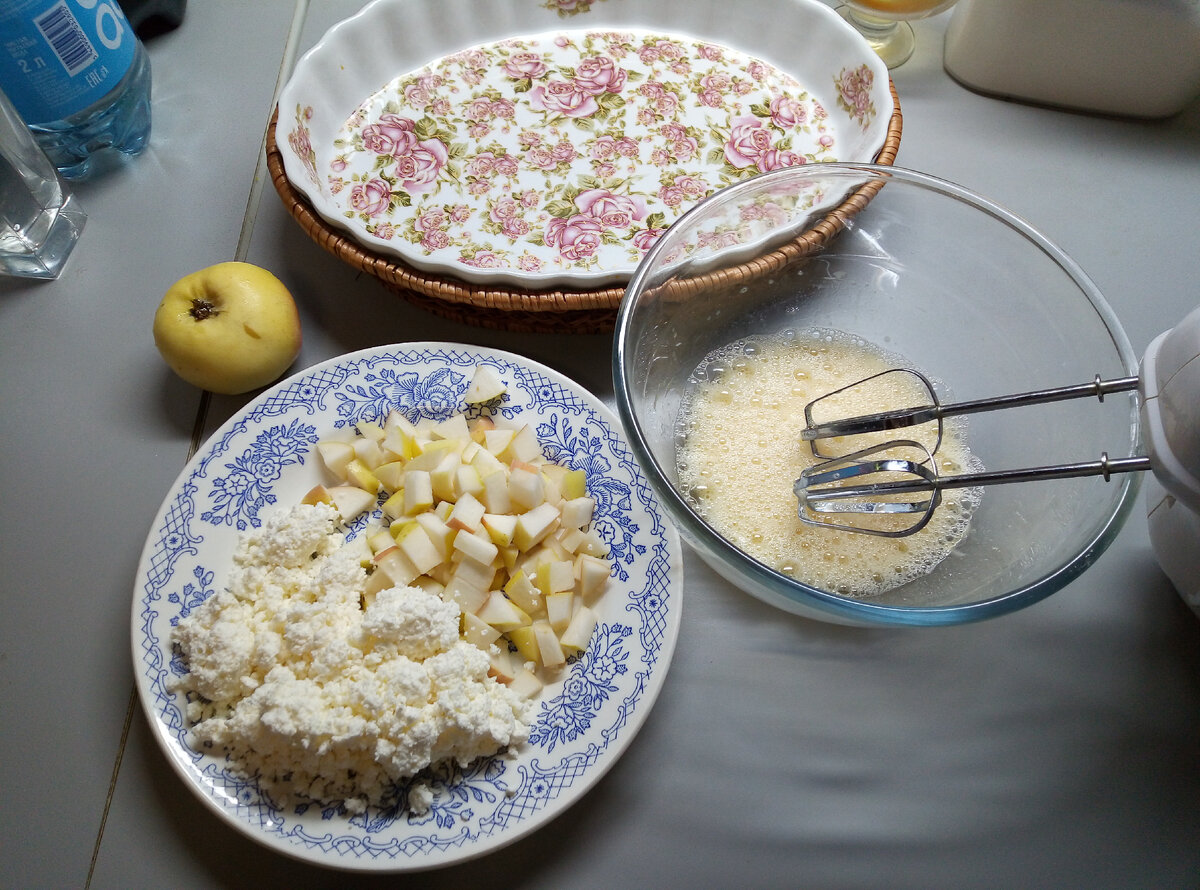 Всем доброго дня. Когда неожиданно звонят друзья, и говорят, что они едут в гости, выручит этот быстрый пирог. Тесто делаем как на шарлотку, т.е. взбиваем 3 яйца, стакан сахара, стакан муки. Затем добавим стакан творога и любые фрукты. Яблоки. Сливы. Апельсин. Груша, все, что найдется на данный момент. Если ничего нет, то одного творога тоже достаточно. Замешиваем тесто, выливаем в форму ивыпекаем 30 минут при 180*С. Пирог подойдёт и к чаю и к молоку. Вкус обалденный. Пирог рассыпчатый и нежный. А вы спасены перед гостями. Спасибо за внимание, до свидания и жо новых статей.