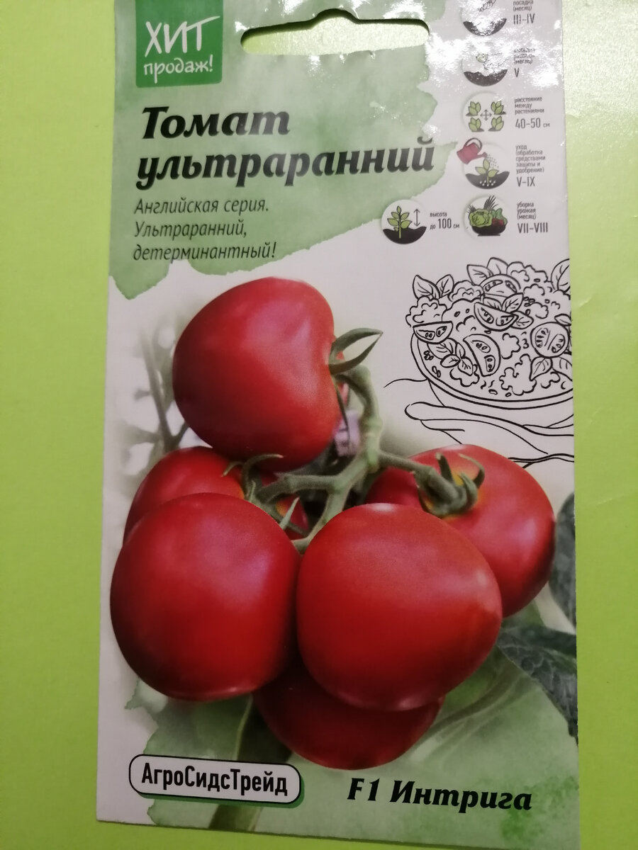Добрый день, уважаемые дачники - подписчики, читатели и гости моего канала ! * * * Я никого не учу как жить и как что делать. Я не учу удивлять соседей и вызывать их "дикую" зависть. Я не даю "ценных" советов и указаний. Я просто рассказываю о нашей жизни на нашей даче. * * * В этом году мы на своей даче выращивали томат сорта "Интрига". Сразу же скажу, что на дачный сезон "22 года семена этого томата уже купила. По информации оригинатора на упаковке мы узнали, что это ультраранний детерминантный гибрид томата (75-80 дней от всходов до начала созревания). Томат неприхотлив в выращивании и прекрасно завязывает плоды в независимости от условий выращивания. Гибрид высокоурожайный. С этими утверждениями мы полностью согласны. При использовании стимуляторов плодообразования плоды «тянут носик». Вот здесь я хочу вставить свое "но" - мы не применяли никаких стимуляторов. Но практич