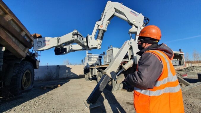 Транспортный комплекс АО «Соколовско-Сарбайское горно-обогатительное производственное объединение» (ССГПО), входящего в ERG (Евразийская Группа), пополнил свои ряды новым шинным манипулятором. Это первый пробный экземпляр данной техники в ERG. Стоимость комплекса около 285 млн тенге. Сейчас на территории Авторемонтного цеха проходит апробация шиномонтажного комплекса. Совсем скоро установка приступит к замене или ремонту колес в карьерах объединения с минимальными затратами времени. Главная отличительная черта новичка – мобильность. Шиномонтажный комплекс Stellar под управлением двух специалистов будет выезжать на место остановки техники. Платформа позволяет перевозить одновременно до двух запасных колес. При слаженной работе машина после ремонта возвращается на маршрут уже через 1,5-2 часа после вынужденной остановки. – Сейчас в случае повреждения привлекается тягач, который буксирует неисправную технику к месту, где проводятся ремонтные работы. В целом процесс занимает до суток, – р