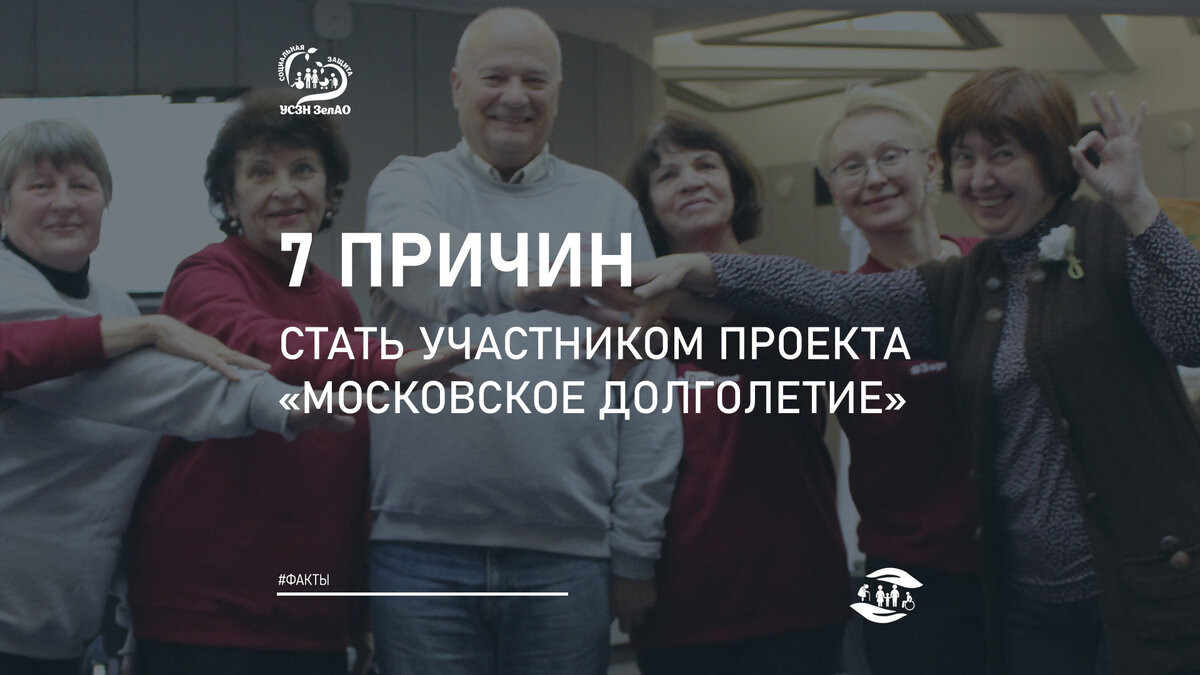 «Московское долголетие» — крупнейший оздоровительный, образовательный и досуговый проект для москвичей старшего возраста. Здесь каждый найдет себе занятия по душе: спортивные, творческие и образовательные активности доступны как офлайн, так и на онлайн платформах. 7 причин стать участником Проекта «Московское долголетие»: Все занятия для пенсионеров проводятся БЕСПЛАТНО. К занятиям можно присоединиться! Запись на занятия по ссылке: https://www.mos.ru/city/projects/dolgoletie/ Или в территориальных центрах социального обслуживания "Зеленоградский":