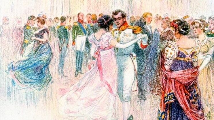 На балу Наташа танцует с Пьером, и её это очень будоражит: он взрослый, необычный и приехал из-за границы.