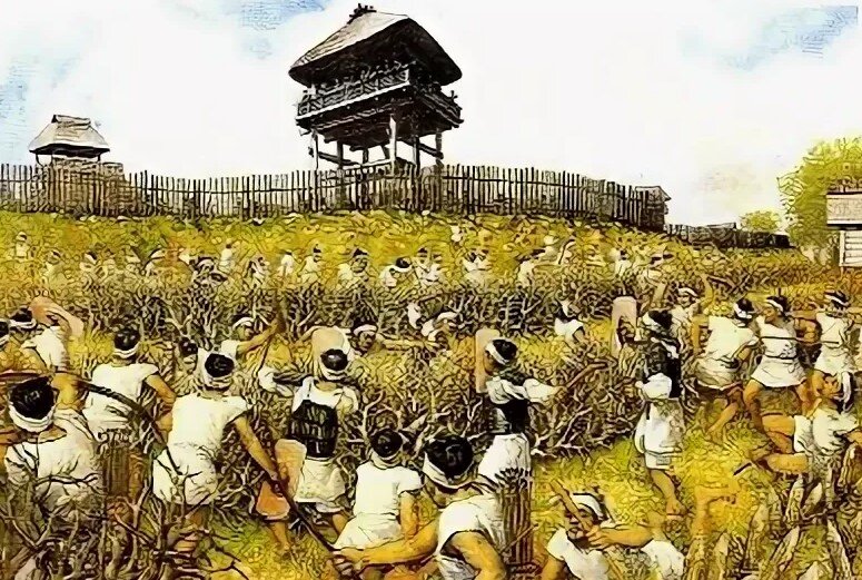 Внедрение поливного рисоводства имело долговременные социальные последствия, влияющие на жизнь в японской деревне и по сей день, поскольку такая технология требует сложной координации труда. В Китае выращивали рис по меньшей мере с 5000 года до н. э., а на Корейском полуострове — примерно с 1500 года до н. э. Скорее всего, переселенцы или торговцы с Азиатского континента привезли эту культуру в Западную Японию. Поначалу рис выращивали в естественной болотистой местности. Такие поля засевали семенами, а дальше полагались на дождь, который принесет богатый урожай. Но со временем выращивать рис начали более системно. Крестьяне огораживали заливные поля, обеспечивая их водой из специально построенных оросительных каналов. Сначала отдельно выращивали рассаду, а потом высаживали ее на поля аккуратными рядами, чтобы упростить себе прополку. Изготавливались специальные инструменты: деревянные грабли, железные мотыги и лопаты, ступы и песты для измельчения риса, каменные топоры и серпы. Когда ирригационная система стала более управляемой, рисовые поля и крестьянские поселения начали строиться на более высоких уровнях. Обработка заливных полей — интенсивный труд, требующий совместных усилий по возделыванию земли, организации полива и сбору урожая. Но рис стоил этих усилий: он богат калориями и способен прокормить больше людей, чем собирательство. Из-за требований интенсивного земледелия японцы стали селиться в низинах устойчивыми крестьянскими общинами. С тех пор рис стал главным продуктом японской экономики, хотя и другие злаковые культуры, например просо или гречиха, играли большую роль в ежедневном рационе крестьян вплоть до ХХ века.