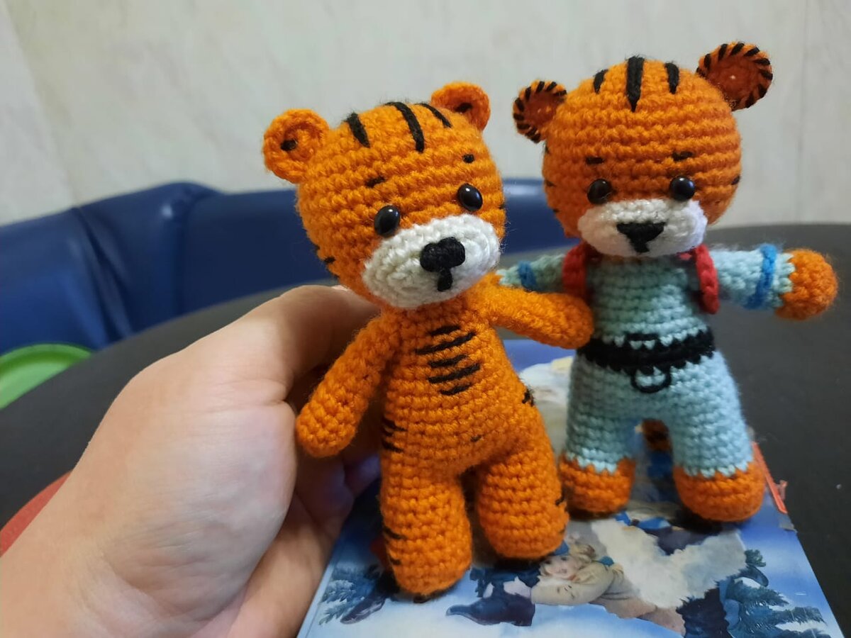 Взяв это описание за основу, можно вязать тигрят в разных нарядах и с разными аксессуарами.