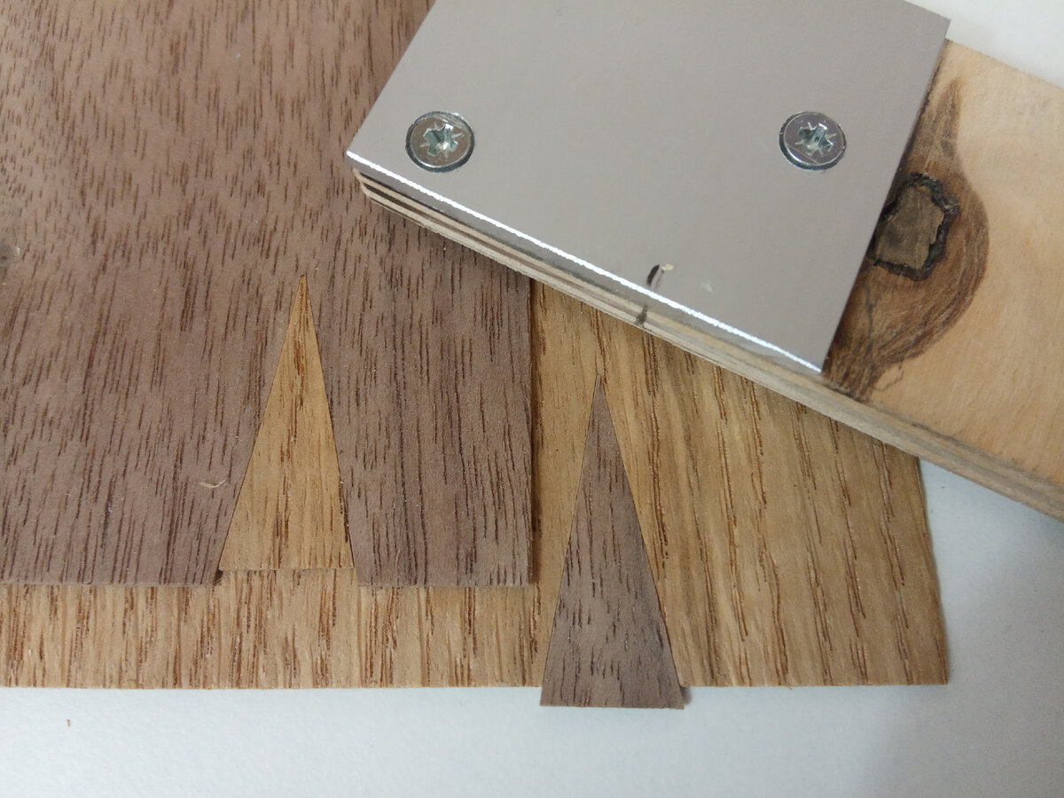 В реставрации мебели, фанерованной шпоном, нередко самый большой объем работы приходится на восстановление утрат шпона на поверхности изделия. Причем часто гораздо проще восстановить одну большую утрату, чем множество мелких, так как каждая "заплатка" нуждается в отдельном изготовлении, врезке и подгонке ее на месте. Такая работа отнимает много времени. Для облегчения такого рода работы в местах, где шпон не нуждается в тщательной проработке по текстуре (внутренние стороны корпусной мебели, полки и т.д) я решил сделать небольшой вырубной штамп, позволяющий одновременно изготавливать как саму вставку, так и место под нее непосредственно на детали. В начале любой работы на пробу делается прототип, который проверяется на эффективность и вообще на дальнейшую целесообразность изготовления приспособления. Прототип Чтобы быстро понять, в нужном ли направлении ведутся "изыскания", делаю максимально простой и несложный инструмент, позволяющий оценить его функциональность. Использую, опять ж