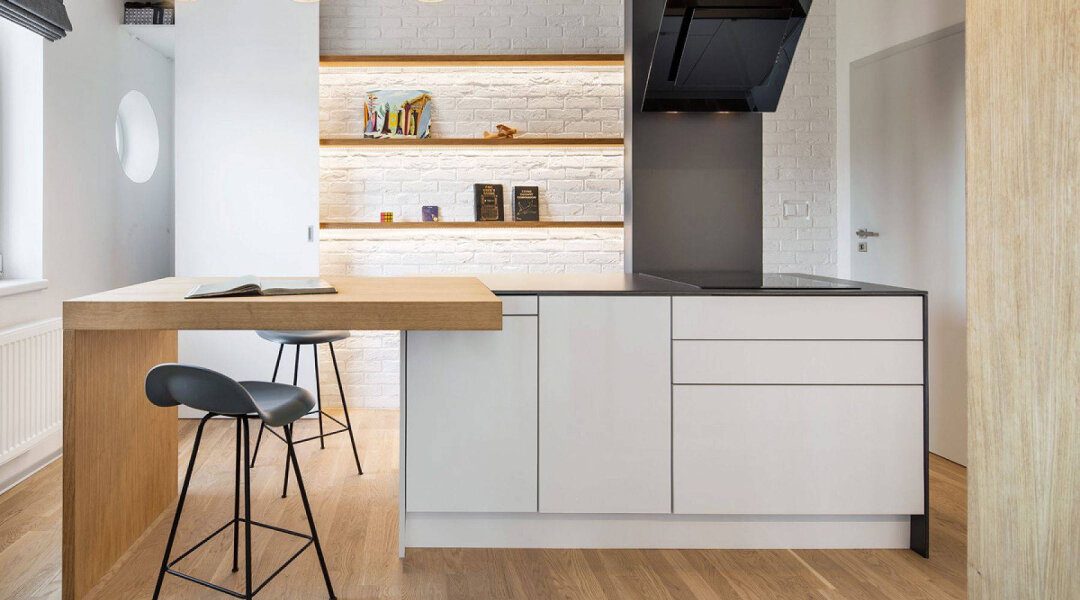 Кухня. Хорошо, если кухонный гарнитур будет максимально вместительным, а его высота будет до потолка. На верхние полки можно положить редко используемые предметы и посуду. Обеденный стол можно заменить узкой барной стойкой, либо приобрести раскладывающуюся модель. Легкие штабелируемые табуреты или складные стулья можно быстро убрать и удобно хранить. Прозрачные стулья, изготовленные из прочного пластика, не утяжеляют пространство, при этом они комфортные и красивые.