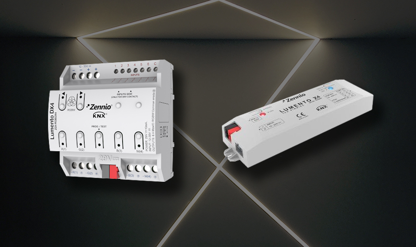 Линейка Zennio Lumento включает 5 вариантов управления RBG и RGBW с постоянным напряжением или постоянным током, а также варианты монтажа диммеров в "полевых условиях"(например - за потолком) и на DIN-рейку. Это позволяет легко интегрировать расширенное управление освещением в систему KNX и эффективно адаптировать к индивидуальным спецификациям и требованиям инсталляции для каждого проекта. Для нагрузок с постоянным током следует использовать Lumento C3 или Lumento C4 («C» для тока и 3/4 для количества каналов, соответственно). Если необходимо управление постоянным напряжением, то потребуется либо Lumento X3, либо Lumento X4. Наконец, Lumento DX4 - это версия диммера для монтажа на DIN-рейку для управления постоянным напряжением. Линейка Lumento предназначена для широкого спектра номинальных мощностей: до 180 Вт на канал при 30 В постоянного тока/при постоянном напряжении (с Lumento DX4) и до 30 Вт на канал при 1000 мА в контроллерах с управлением постоянным током. Кроме того, если вы