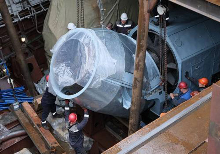 Специалисты питерской «Северной верфи» начали работы в рамках которых будет осуществлена центровка двигателей очередного фрегата, который строится по проектным требованиям 22350 и получил имя адмирала флота Советского Союза Исакова. Пару месяцев назад на ставший третьим в новейшей серии «Адмирал Исаков» работниками «Северной верфи» проведена погрузка с предварительной установкой турбин, а также редукторов, составляющих ДГТА модели М55Р, который разработали в ОСК и производят в России. Погрузка данных турбин обоих бортов, а также редукторов в корабельное машинное отделение, расположенное в корме фрегата, проводилась с помощью специальных отверстий и вырезов. Здесь нужно отметить, что постройка всей серии кораблей пр.22350 и «Адмирала Исакова» в частности постоянно контролируется лично главкомом российского ВМФ Николаем Евменовым. Напомним, при водоизмещении около 5 500 тонн данные фрегаты имеют длину 136 метров при максимальной ширине в 16 метров, их максимальная скорость находится на у