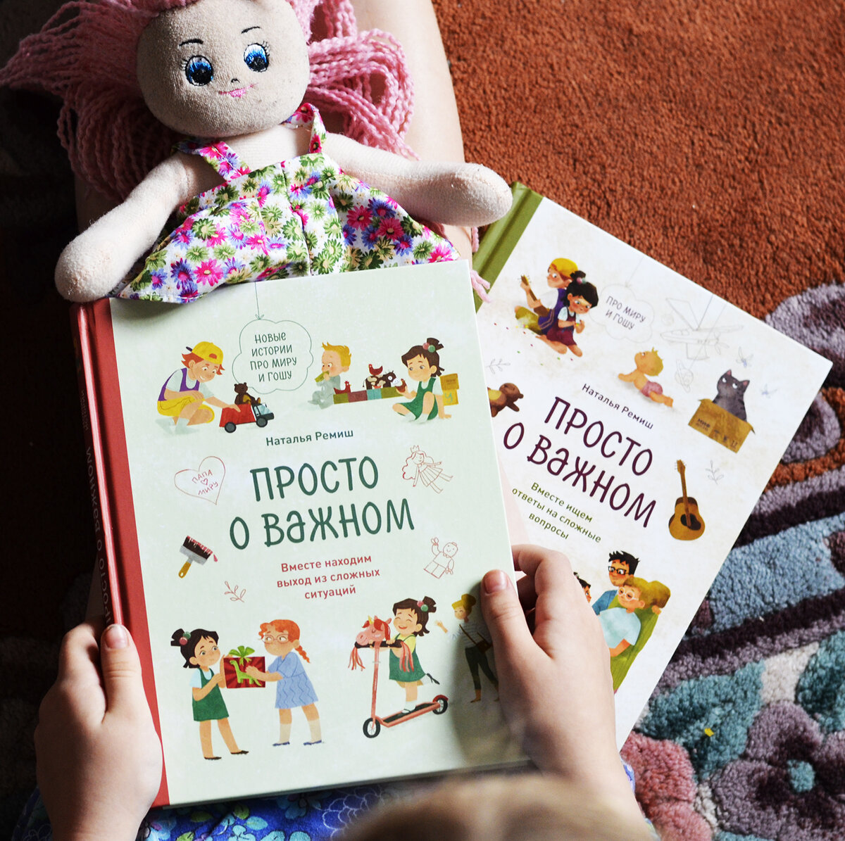 Примерно год назад мы с дочкой впервые познакомились с книгой «Просто о важном. Вместе ищем ответы на сложные вопросы» Натальи Ремиш, вышедшей в издательстве «Манн, Иванов и Фербер» в МИФ.Детство. Впечатление у меня осталось неоднозначное. Наталья Ремиш - писатель, журналист, продюсер, автор мультика «Просто о важном» и многодетная мама, живущая большой семьей в Амстердаме. Участвует в различных мероприятиях, является спикером одной из лекций серии для родителей «В партнерстве с ребенком», записи которых можно бесплатно посмотреть тут. Первая ее книга «Про Миру и Гошу» «Просто о важном. Вместе ищем ответы на сложные вопросы» вызвала у меня много вопросов. В книге рассматривалось 10 тем, некоторые из которых мне показались очень ситуативными, о которых заранее я с ребенком говорить не хотела. Например, тема развода родителей, смерть питомца или ситуация, когда ребенок убегает из дома. В результате, первая книга оставила больше вопросов, чем ответов… Сейчас в том же «Манн, Иванов и Фербе
