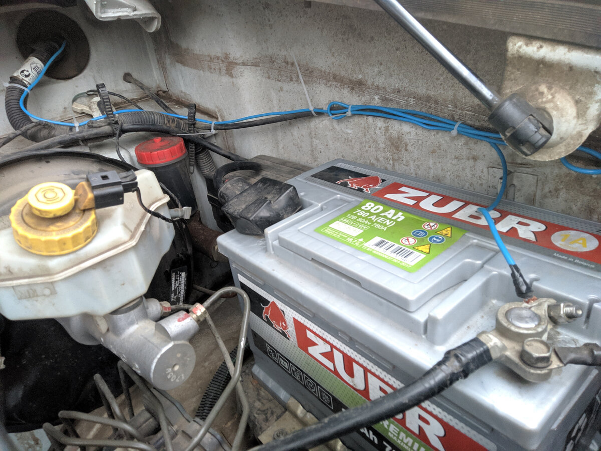 Совсем недавно заметил, что приборная панель начала путаться в показаниях: Для начала проверил массовые провода от аккумулятора на двигатель и кузов, силовые плюсовые от аккумулятора до генератора и от гены до панели (тонкий провод). Контакты бензонасоса, все ок. Остаётся одно, масса самой панели, которая осуществлена в виде самореза через блок предохранителей. Оказалось, что саморез ослаб, как и все предохранители, видимо, от тряски. Так что иногда надо проверять. Но и это не помогло, пришлось тянуть новую массу именно от приборной панели на минус аккумулятора. Через уплотнитель идёт заводская коса в гофре, но резинка наша, российская, за 6 лет вся в трещинах, так что протащить через нее провод не составило труда. Крепил стяжками к гофре проводки и кожуху троса капота, но не сильно, боялся пережать трос)) Провод 2.5 квадрата, паял петлю прямо в машине :) Изнутри выглядит так: Заводские массы закреплены сверху, но подлезть туда тяжело, да и длины самореза может не хватить, чтобы зажат