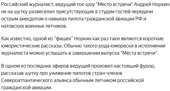 Норкин простым анекдотом про русского летчика поставил на место "асов" НАТО