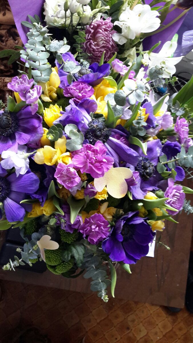Готовимся к Настиной свадьбе, девчонки букет заказывают, а там сиреневые и желтые цветы есть. Надо у Насти спросить, как она к желтым цветам относится, вроде желтый к богатству, а некоторые думают, что это цвет измены. Приметы все по разному трактуют.