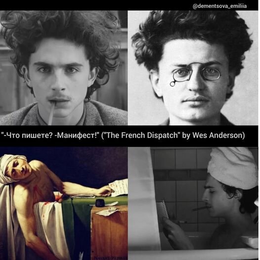 Бог или дьявол в деталях – неизвестно, но что Уэс Андерсон кроется в деталях – это факт. Он режиссер-автор, чей стиль угадывается и влюбляет в себя с первого взгляда, киносказочник и визионер, чьи полотна поедают глазами и жалуются на приторность и возмутительную идеальность кадра. Во-первых, это красиво, а во-вторых, красиво настолько, что «во-первых» не только достаточно, но даже слишком. Симметричная композиция, эксцентричность мизансцен, упоение подробностями под глазурью модернистской цветовой палитры, – каждый кадр Андерсона вынимает из души: «Остановись, мгновение! Ты прекрасно!» Старомодное режиссер умеет превратить в модное, вот почему «Французский вестник», выходу на экран которого предшествовала более, чем годовая пауза, был застрахован от риска выйти в тираж. Этот фильм-журнал предназначен для того, чтобы его перечитывали снова и снова. Лишь «оглавление» – перечень «звезд» занятых в фильме – займет половину текста. Как нет у Андерсона случайностей, так нет во «Французском в