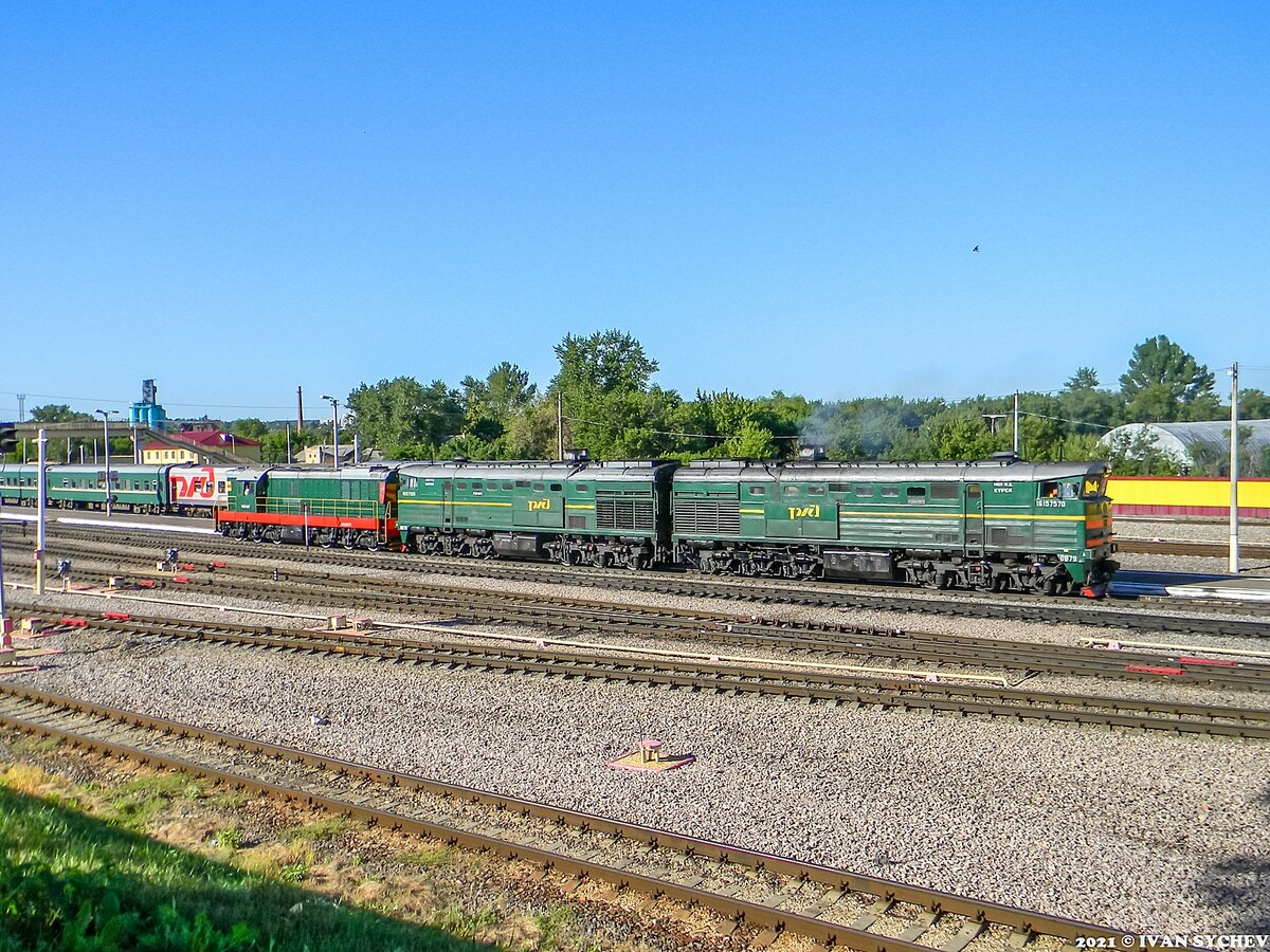 Сразу замечу: сегодняшний обзор касается фотографий локомотивов, необычных для меня. Быть может кто-то из "ниочем" и "радинаписать" неоднократно это видели, о чем могут прямо сейчас написать в самом низу - в комментариях. А для большинства, как мне кажется, эти фотографии, которые я "насобирал" за 2011-2012 годы будут если уж не интересны, то, возможно, любопытны. Хотя, опять же как мне кажется, не так уж часто встречается что-то подобное на железных дорогах России. 1. Итак, первое, на мой взгляд любопытное фото, сделано на станции Ефремов. По главному ходу, по первому пути, магистральный грузовой тепловоз 2ТЭ10М-0879 куда-то на юг потащил маневровый тепловоз ЧМЭ3-1897. И все бы ничего, если бы оба тепловоза не были приписаны к Московской железной дороге, а буквально в направлении их движения (на юг) через 6-7 километров МскЖД заканчивается и начинается Юго-Восточная. Что бы им делать там? 2. Между первой и этой фотографией несколько МЕСЯЦЕВ разницы. ЧТобы не возникло иллюзии, что пара
