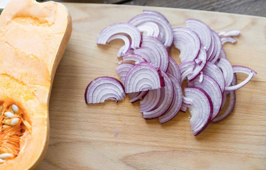 Ингредиенты: Тыква — 500 г Лук — 1 шт Растительное масло — 1 л Йогурт 3-5% — 100 г Специи Мята и укроп Тёплый салат, который легко приготовить за 15 минут, который легко может быть закуской, гарниром или отдельным блюдом? Главное в использовании технологии фритюра — использовать бумажные полотенца. Тогда у нас получается волшебный салат. В качестве «подушки» выступят полоски хрустящего, карамелизированного лучка. Возьмите хорошую большую луковицу и порежьте тонкими слойками в 2-3 мм. Далее налейте хорошее масло в узкую кастрюлю с толстым дном. Примерно 1 литр, так, чтобы высота слоя была не менее 4-5 см. Тыкву (500 г) очистите и порежьте кубиками в 2-3 см. Сорт берите тот, который больше всего нравится. Обваляйте кубики тыквы в любимых специях. Поставьте масло на средне-сильный огонь. Когда оно будет достаточно прогрето, начните обжаривать лук. Мы ждём хрустящего состояния, поэтому хорошая карамельная корочка будет ориентиром, что лук готов. Переложите его на бумажное полотенце, чтобы
