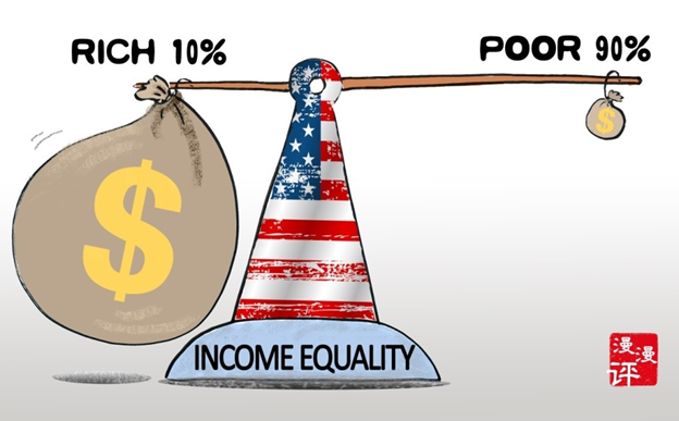 США демонстрирует наибольший коэффициент расслоения среди развитых стран. Последние десятилетия США были флагманом капитализма в мире, культивируя образ зажиточного бизнесмена, осуществившего "американскую мечту". Компании США также демонстрировали впечатляющую динамику в этот период. Столь высокое расслоение в обществе создает опасения по поводу дальнейшего рекордного роста рынка акций.