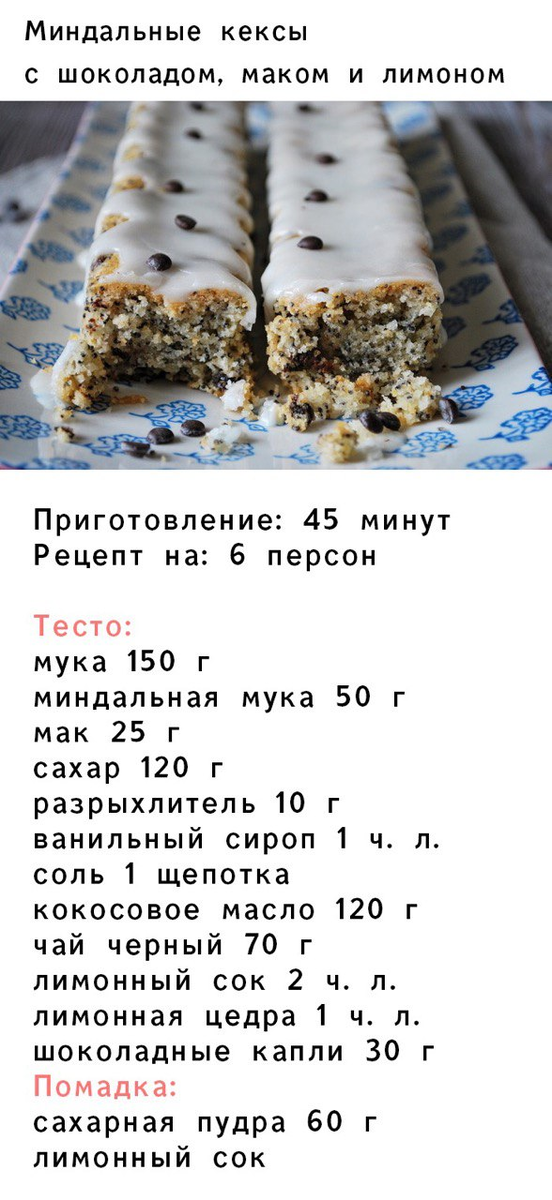 Миндальные кексы с шоколадом, маком и лимоном