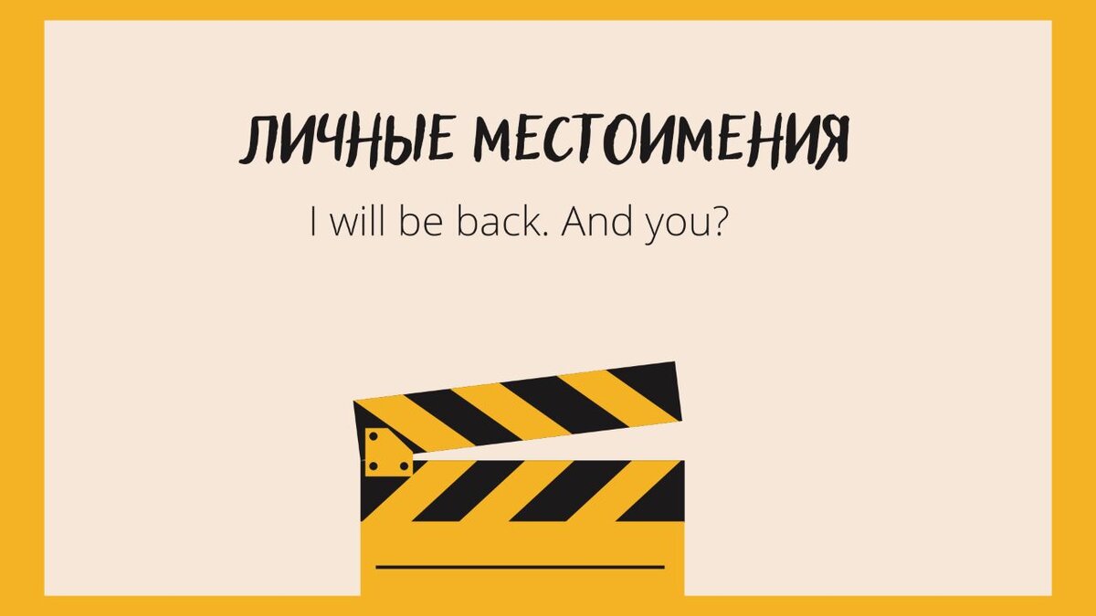Доброго времени суток и welcome, дорогой читатель и ученик! Помимо обучению через фразы киногероев, я также решил сделать небольшие грамматические статьи, начав с малой, но достаточно важной части – личных местоимений. Что ж, теперь это личное! Личные местоимения в английском языке Местоимение — слово, которое заменяет существительное (предмет или лицо), при этом не называя его, только обозначая. Это такие слова, как например: I, we, they (я, мы, они). У английских местоимений есть определённые особенности: У личных местоимений есть три основных падежа: Именительный падеж (Кто?, Что?) Объектный (Кому?, Кого?, Кем?) Притяжательный (Чей?) I — я me — мне, меня my — мой he — он him — ему, его his — его she — она her — ей, ее her — ее it — оно it — ему/ей, its — его/ее we — мы us — нам, нас our — наш you - вы,ты you — вам, тебе your — ваш, твой they — они them — им, их their — их( кто-то мог бы сказать "ихний") Именительный падеж: мест