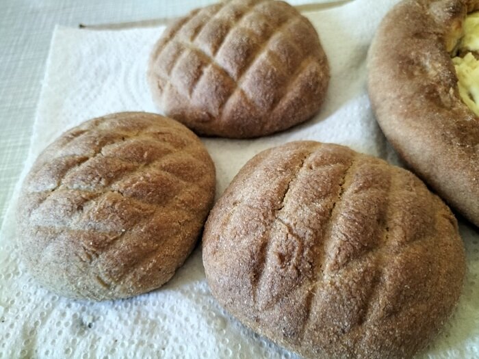 Моментальное тесто без дрожжей на сметане с желтком. Очень вкусно из двух видов муки. Сделала хлебцы и ватрушку