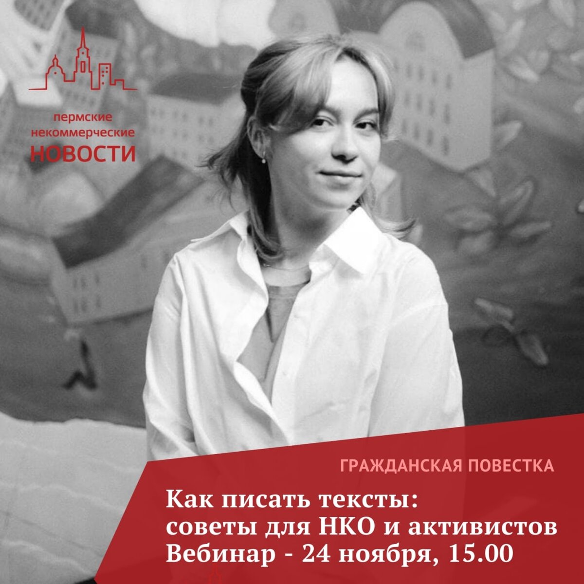 Приглашаем активистов, начинающих журналистов и сотрудников НКО на практический лекторий по написанию сильных текстов. 24 ноября с 15:00 до 17:00 по Перми Пермские некоммерческие новости организуют вебинар «Как писать тексты: советы для НКО и активистов», спикером которого приглашена Валерия Березина – старший преподаватель кафедры журналистки и массовых коммуникаций ПГНИУ, автор проекта «Слово_дело». Участники практического лектория смогут на встрече из теоретиков превратиться в практиков: - узнать, что такое «Информационный стиль» - приёмы редактирования, которые помогают очистить текст от мусора, наполнить его полезной информацией и сделать читаемым для пользователей соцсетей. - усвоить алгоритм работы над текстом: как читать книгу «Пиши, сокращай» (М.Ильяхова, Л.Сарычева), проверять текст на чистоту и читаемость на сайте glvrd.ru - разобрать механизмы порождения и восприятия речи и поймём, почему такие узкоспециальные знания важны тем, кто работает в соцсетях. - выполнить практич