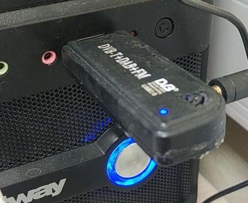 Минусов у устройства было много, но оно реально работало. Именно на такой черненький тюнер и такую антенну я сидя у себя в офисе принимал DMR сигналы для статьи в Дзене.