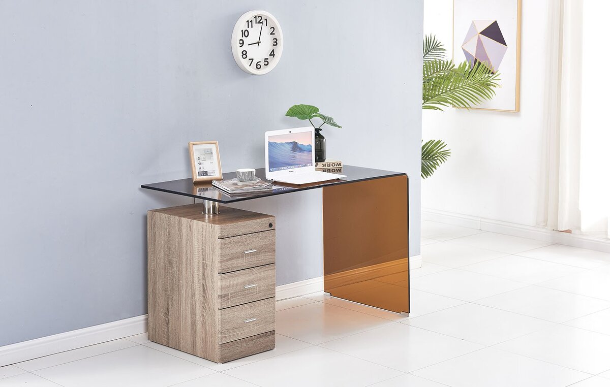Для домашнего офиса первом делом нужно выбрать идеальный письменный стол – комфортный по высоте и ширине. iModern собрал для вас 16 функциональных и стильных моделей для рабочего кабинета. Столы с Х-образными ногами: 1. Письменный стол Sydney отличается простым дизайном и хорошо подходит для кабинета в стиле лофт, минимализм. Черные металлически ножки, столешница орехового оттенка с мини-ящиком под ней – все это создает простой, но удивительно элегантный образ. Стеклянные столы: 2. Письменные стол Sky – воплощение минимализма. Он полностью сделан из стекла и выглядит очень интересно, несмотря на простую форму и дизайн. 3. Письменный стол Waterfall – это несколько неожиданное сочетание стеклянной столешницы коньячного цвета и светлой деревянной тумбы с ящиками из МДФ. С первой 8-кой можно ознакомиться по ссылке. Угловые столы: 4. Стол Attica, выполненный из МДФ (с белым покрытием или шпоном ореха) и стекла, подходит для таких стилей, как минимализм, лофт, хай-тек. Он очень удобен