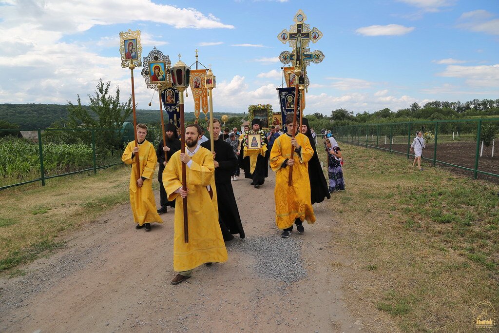 По совершении молебна и прочтении молитвы на начало доброго дела, все присутствующие вышли на крестный ход. Во время крестного хода совершался акафист Пресвятой Богородице “Радуйся, Невесто Неневестная!”. На подходе к селу Адамовка крестный ход соединился со встречным крестным ходом из самого Свято-Иоанновского скита. С молебным пением крестный ход проследовал в храм во имя святителя Иоанна Шанхайского, где в 15:00 было совершено праздничное всенощное бдение, которое возглавил наместник Свято-Успенской Святогорской Лавры митрополит Святогорский Арсений.