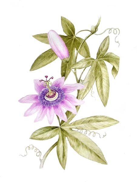 Пассифлора (Страстоцвет) родом из тропиков. Лиана. По мере роста распускает сначала обычные листья овальной формы, позже листья появляются уже резной формы и уснования каждого резного листа имеется длинный ус. Этими усами лиана цепляется за опору и тянется к яркому свету. Растение абсолютно неприхотливо. Летом можно выращивать на улице в кадке или в грунте. На зиму лучше выкапывать или заносить в помещение. Растет быстро. Полив требуется частый, но без застоя воды в горшке. При недостатке влаги опускает листья. После полива листья быстро приходят в себя. Старые листья периодически отсушивает, но это происходит реже появления новых листьев. Цветет летом очень красивыми цветами, похожими на звезду. Некоторые сорта пассифлоры завязывают плод - маракуйя. Есть самоопыляемые сорта, или можно попробовать опылить самостоятельно - аккуратно переносить пыльцу мягкой кисточкой с цветка на цветок. Цветы распускает часто, но цветение одного продолжается не более суток. Растение подходит для нов