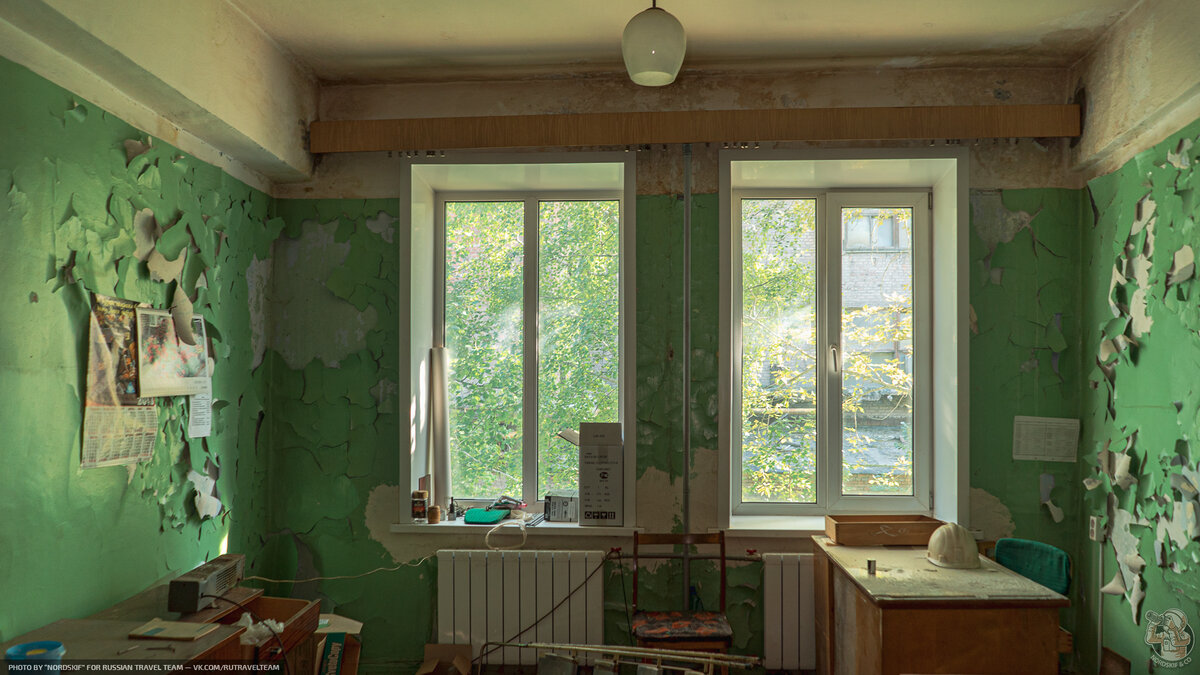 Заброшенное производство на территории действующего. Мы снова притворились арендаторами и спокойно проходим через главную проходную показав, заранее выданный, временный пропуск. Наш цех находится в самом сердце завода и иначе как официально, увы, не попасть. Производство загнулось в 2014 году. Спустя почти четверть века после развала СССР. Как думаете, что представляет из себя административно-бытовой корпус завода проработавший два десятка лет в «новой эпохе», возможно, нас ждёт заброшенное офисное здание? — как бы не так… Новые батареи и стеклопакеты на окнах. Всё так, как обещало объявление о сдачи помещений свободного назначения. Но «современность» быстро улетучивается, стоит сделать лишь несколько шагов по пыльному, тёмному коридору в сторону остальных помещений бывшего завода. В кабинетах бардак: краска осыпается, штукатурка отваливается, бумаги и личные вещи валяются в полнейшем беспорядке. Электричество, как нам сказали, осталось лишь в небольшой части здания, отопление и вовсе,