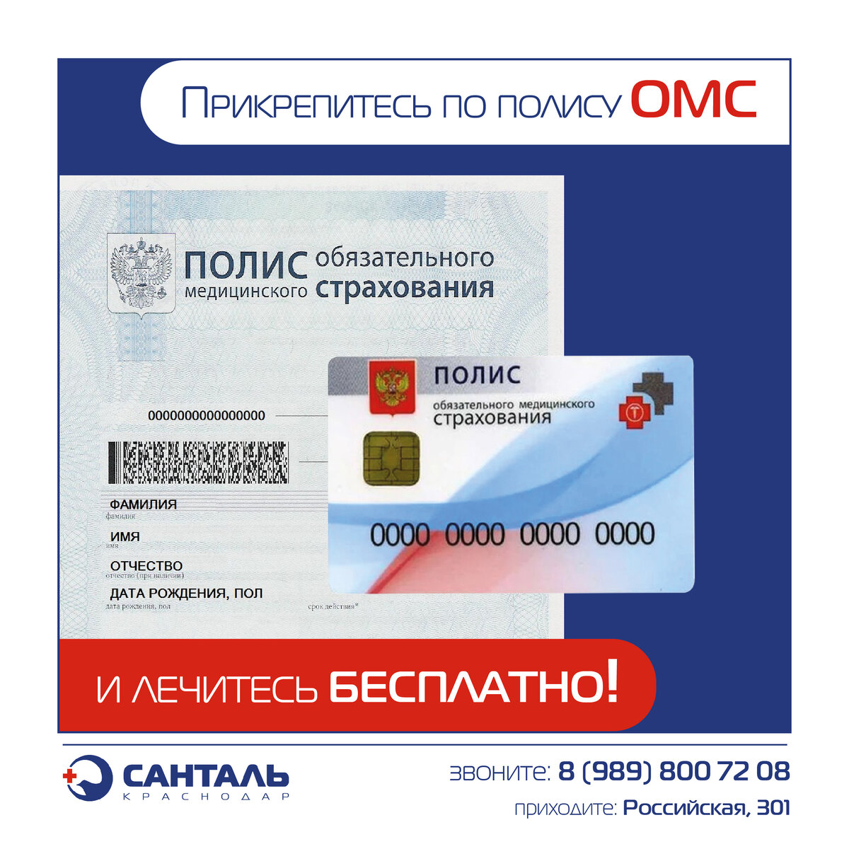 Инновационная клиника Санталь Краснодар. Прикрепитесь по полису ОМС и лечитесь бесплатно!