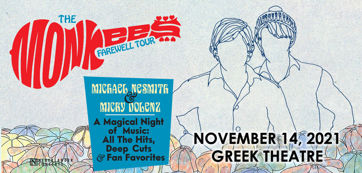 Понимаю, что The Monkees сегодня далеко не для всех являются актуальным именем, и всё же… Уверен, что их пластинки у многих из вас вызывают тёплые ностальгические чувства. Кто знает, может и у следующих поколений возникнет желание послушать их хиты – по крайней мере, сделаны они были очень добротно. Напомню вам, как выглядела группа в 1967-ом – в период пика своей популярности. Слева направо: Майкл Несмит (Michael Nesmith), Дэйви Джонс (Davy Jones), Питер Торк (Peter Tork), Микки Доленц (Micky Dolenz). В это воскресенье, 14 ноября, The Monkees завершили свой прощальный тур выступлением в Greek Theater в Лос-Анджелесе. Это означает окончание концертной деятельности двух оставшихся в живых частников оригинального состава - Микки Доленца и Майкла Несмита. Концерт, разумеется, проходил при поддержке мощной сопровождающей группы, состоящей из музыкантов и вокалистов: иначе и не бывает, учитывая солидный возраст оригинальных «обезьян». Концерт открылся песней 1969 года “Good Clean Fun”, ну а