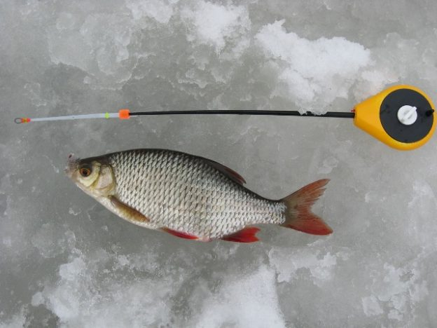 Снасти для ловли на мормышку используются те же, что и в поплавочной рыбалке. Это могут быть кобылки, балалайки, удочки с открытой катушкой, а также некоторые другие варианты, которые применяются гораздо реже. Лучше всего работают кивки, сделанные из лавсана. Этот элемент оснастки должен иметь длину порядка 10-15 см. Большая длина кивка обеспечивает мягкую игру приманки, что важно при ловле красноперки. На роль основной лески подойдет монофил диаметром 0,12-0,16 мм. Поводок можно сделать из флюорокарбона или из обычной мононити.