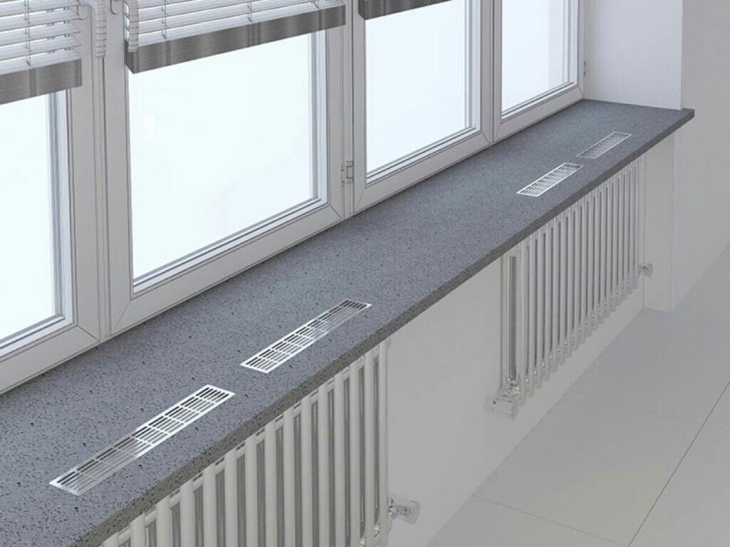 Мало кто задумывается, что тепло в доме зависит не только от самих радиаторов, но и от правильной циркуляции воздуха. Поэтому, когда широкий подоконник полностью перекрывает батарею, возникают проблемы с распределением тепла, а на самих окнах может появиться конденсат. Выход - конвекционные решётки на окна, простое и стильное решение многих проблем. Отверстия в подоконниках, прекрытые решеткой, позволяют пропускать тёплый воздух от радиатора отопления, и при этом не мешают использованию подоконника. А учитывая большое разнообразие форм и цветов решёток, станет ещё и оригинальным украшением! Можно преобрести обычную решётку или даже сделать на заказ - с индивидуальным рисунком. Основные материалы, из которых делаются решётки - металл и пластик. Пластиковые - самые простые и дешёвые варианты, а металлические - крепче и выдержат большой вес, если вы хотите использовать подоконник как сиденье, или подставку для больших растений. Установить решётку можно и во время монтажа самого подоко