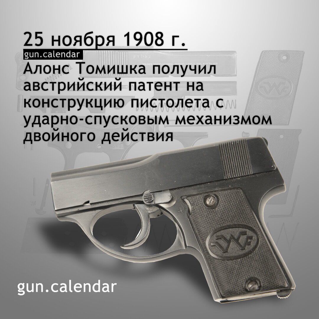 В июле 1908 года 41-летний австрийский конструктор, чешского происхождения, Алонс Томишка, запатентовал в Англии конструкцию пистолета с ударно-спусковым механизмом двойного действия, 25 ноября 1908 года был выдан австрийский патент на данную конструкцию. В том же году Томишка вместе со своим компаньоном Франком Камилло основали Венский завод огнестрельного оружия Wiener Waffenfabrik и с 1909 года попытались организовать производство пистолетов, получивших название «Little Tom» конструкции Томишка в калибрах .25ACP и .32ACP. Обе модели имели идентичную конструкцию и отличались только размерами и емкостью магазина. Пистолет калибра 6,35-мм при длине оружия 113 мм имел высоту 83 мм и ширину 21 мм — позиционировался в качестве карманного оружия, пользовался большим спросом и выпускался в гораздо больших количествах, чем образцы в калибре 7,65-мм. Автоматика Little Tom работала на отдаче свободного затвора, а возвратная пружина надевалась на неподвижный ствол. Ствол имел 6 правосторонних