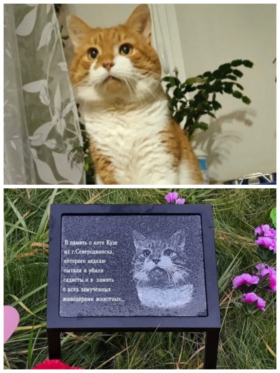 Ваш голос ценен! РАСПРОСТРАНЯЙТЕ ИНФОРМАЦИЮ! Три петиции, одна из которых (сайт РОИ) будет рассмотрена на федеральном уровне! 1. https://www.roi.ru/74240/?utm_source=ema 2. https://www.change.org/p/управление-мвд-россии-по-архангельской-области-посадить-на-5-лет-живодеров-из-северодвинска-замучивших-до-смерти-14летнего-кота 3. https://www.change.org/p/привлечь-садистов-анну-громович-и-артема-лаврентьева-к-уголовной-ответственности Анна Громович и Артем Лаврентьев сломали коту (Кузе) лапы и хвост, проткнули нос, б*ли по голове, прошивали скрепками уши. Кот находился в ящике с кляпом во рту. Пытkи велись в присутствии 6-летнего ребёнка. Кот умер. Случай вызвал резонанс, начались сборы подписей. Россию захлестнула волна живодерства. Социальные сети пестрят видео с демонстрацией жестоких действий по отношению как к домашним животным, так и диким. Садист из Подмосковья живьем зажарил бездомную собаку на шашлычном мангале. В Липецке психически больной человек на улицах, не прячась, наси