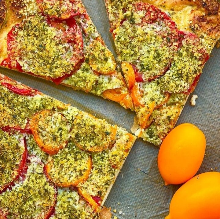 Такой пирог готовится очень быстро, минут 10, а результат превзойдет все ваши ожидания. Что нужно: Приготовление Чеснок, пармезан, сухари и листики петрушки кладём в блендер с насадкой нож и рубим в крошку. Далее, берём тесто, раскатываем его и смазываем горчицей. Посыпаем 1/2 частью нашей пармезановой крошкой, затем выкладываем помидоры, порезанные колечками и снова посыпаем сверху оставшейся крошкой. Сбрызгиваем слегка оливковым маслом и отправляем наш пирог в разогретую до 210 градусов духовку на 20-25 минут. Вот такой вкусный и главное быстрый пирог, (что мне особенно нравится) можно приготовить из простых продуктов. Всем приятного аппетита!