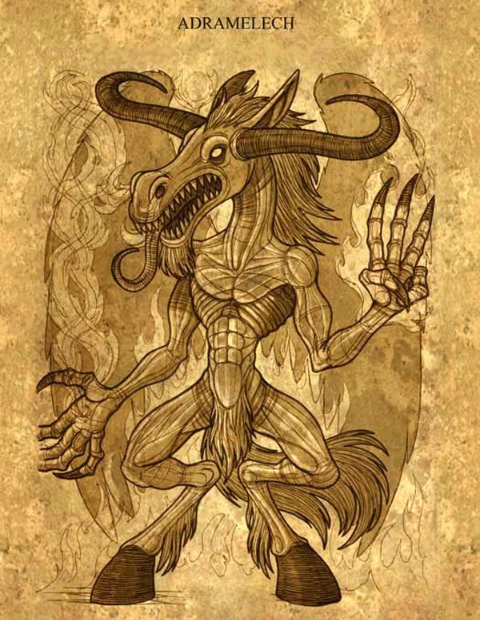 Le cortaron la cabeza, y en lugar de eso le ataron la cabeza de un burro o de un caballo, la pusieron a horcajadas sobre un semental y ataron una cola de pavo real a la silla, y así Adramelech anduvo por las calles durante tres días. No quiénes no se atrevieron a enfrentarse al nuevo rey, temían la misma suerte.