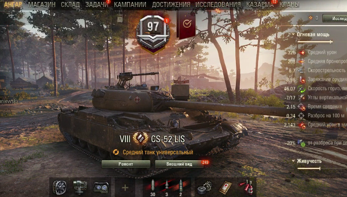Здравствуйте, товарищи курсанты! На этой неделе "картоха" разыгрывает различные призы и скидки в акции "счастливая карта". Раз в сутки можно испытать удачу и вытянуть пять карт с разными "плюшками". На этот раз каждая из карт относится к своему разделу призов и скидок: техника за реальные деньги, низко- и высокоуровневая, техника за золото, также разных уровней, скидки на оборудование и снаряжение и один гарантированный бесплатный приз. Пусть даже аптечка или огнетушитель, в хозяйстве все пригодится. Вчера я сомневался насчет Т77 за 13000 "голды", все-таки он не совсем мне подходит по стилю, а сегодня выпал "лис" за 11000, и поскольку золота у меня завалялась довольно большая куча ещё с новогодних коробок, долго раздумывать не стал. По-моему, это первый раз, когда можно купить этот танк за игровое золото, а не денежные купюры. Танк этот хорош как сам по себе, и с этим вряд ли кто станет спорить, и вдобавок поможет мне прокачать ветку польских СТ, которую я оставил на 6 уровне, поигравш