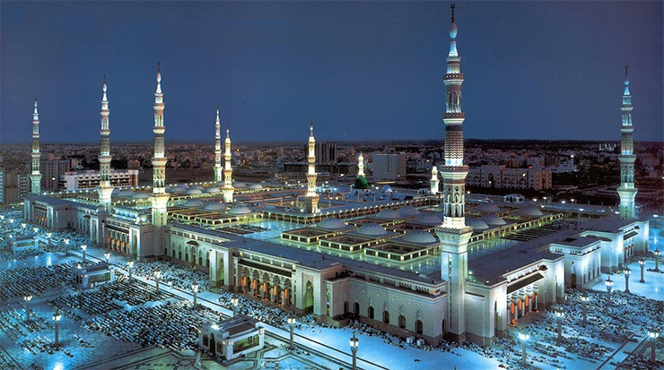 Масджид ан-Набави — одна из крупнейших мечетей в мире, построенная в 622 году пророком Мухаммедом в Медине, Саудовская Аравия