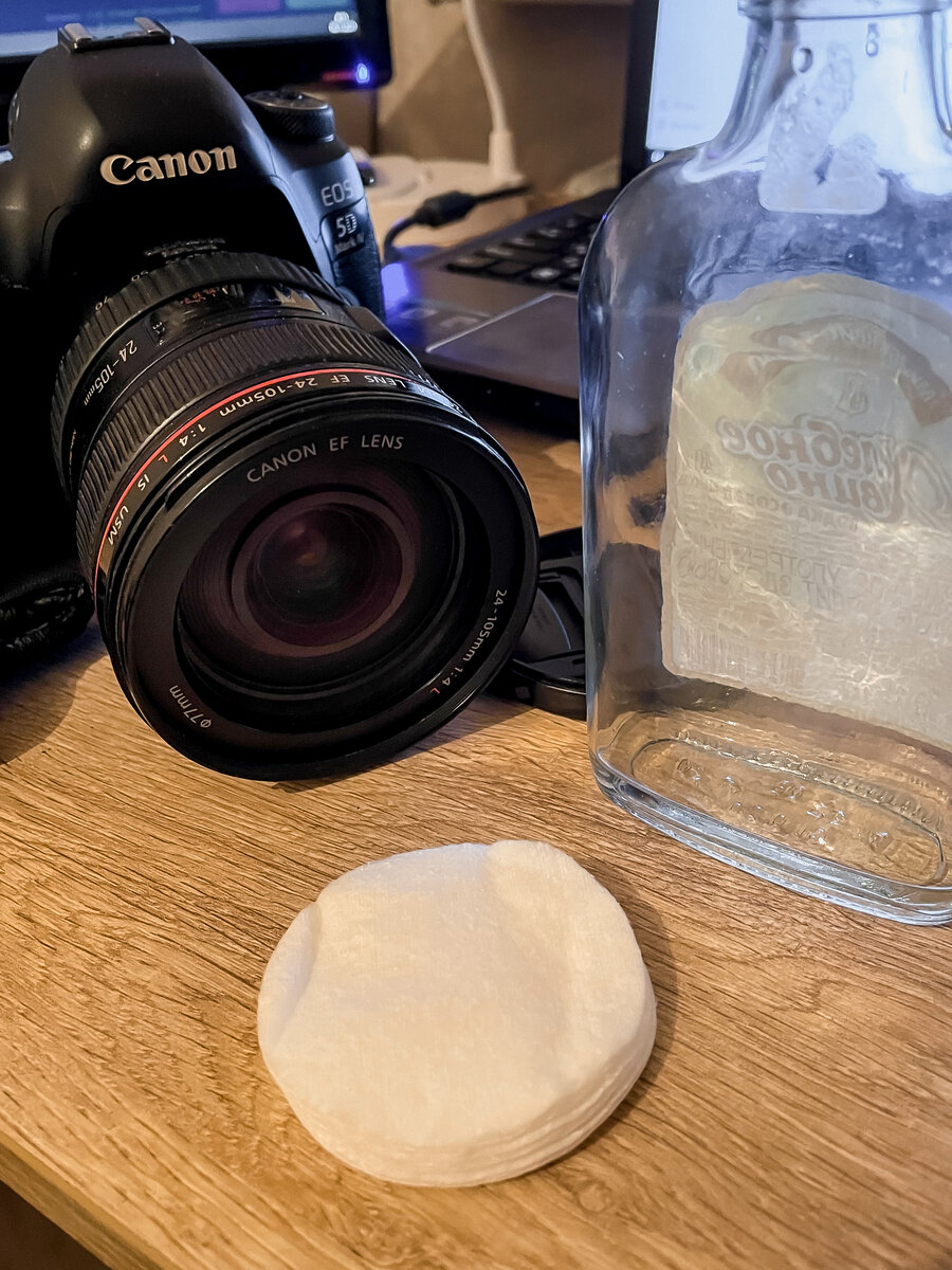 Дал мне мокрую вату и пошел вести беседы с девушками из ЗАГСа, а Я гладил ватой свой 24-105 и не мог поверить что стекло мож