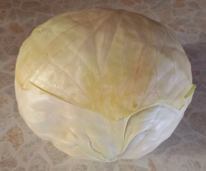 Квашенная капуста очень полезный и вкусный продукт. С наступлением осени начинается и сезон квашенной капусты. Летом она как-то не идет - есть много свежих сезонных овощей, а с наступлением холодов вспоминаешь про капусту. Я ее использую и в качестве гарнира, и просто так в салатах, и для приготовления вкуснейших щей Покупать квашенную капусту легко и приятно, но часто, почти всегда, для квашения капусты в нее добавляют сахар. Пусть его там не очень много на единицу продукта, но диабетики, такие как я, и на воду дуют. Поэтому стараюсь всегда иметь в холодильнике запас капусты, заквашенной своими руками. Не сложно же и много времени не занимает Рецептов квашенной капусты не так много, но есть определенное разнообразие в деталях. Я использую, в основном, два - классический и в рассоле. Рассол я применяю тогда, когда случается купить не очень сочную капусту, а обычно предпочитаю старую добрую классику. Ну посмотрим, что попалось мне на этот раз. Вот такой симпатичный кочанчик системы "кам