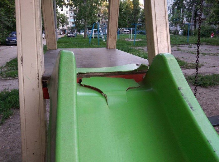 Далее необходимо выявить игровые конструкции, на которых не хватает элементов для безопасной игры: нет перил, выломаны доски и т.д.