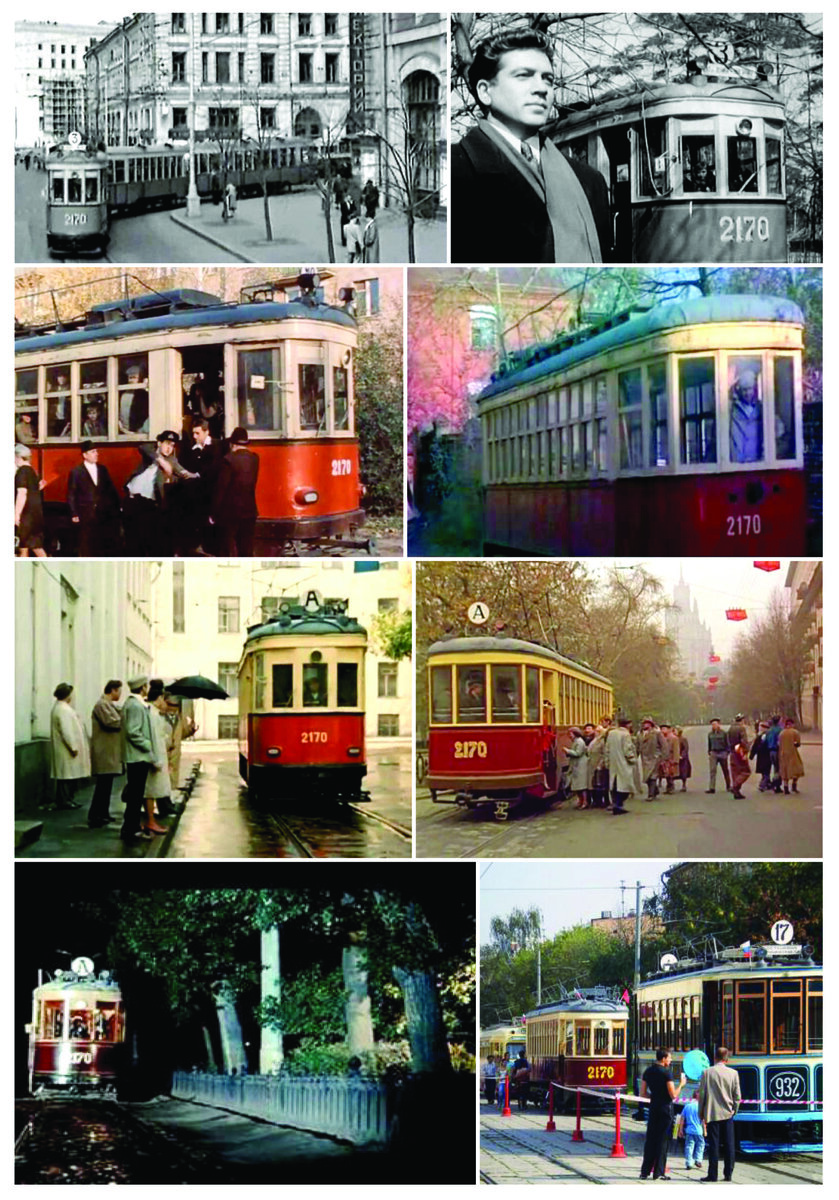 Самым знаменитым неодушевленным артистом советского кино, безусловно, является знаменитейший трамвай под номером 2170 – он сыграл свои роли в десятках разных фильмов, программ и клипов и по количеству отснятых эпизодов заслуживает звание если не Народного, то уж точно Заслуженного Артиста. Выпущенный в 1930 году четырёхосный моторный вагон Коломенского завода – не только знаменитый киноактёр, но и настоящий Ветеран трамвайного движения – первый раз он промелькнул на экранах еще в 1950-х годах в чёрно-белой московской кинохронике.