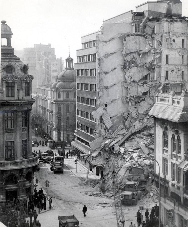 Самое мощное землетрясение в истории Румынии обрушилось на страну и её столицу 4 марта 1977 года. Хотя наиболее тяжёлые разрушения были причинены самому Бухаресту, результаты подземного толчка в 7,5 балла ощущались на всей территории Румынии. 1578 человек погибли, около 10500 получили ранения и десятки тысяч остались без крова. В 70 километрах к северу от Бухареста подземные толчки нанесли урон заводам богатого нефти города Плоешти. В Бухаресте тоже обрушились десятки кирпичных и бетонных зданий, похоронив сотни людей. Некоторые здания были разорваны пополам и возвышались теперь на фоне весеннего неба необычными контурами, напоминая гигантские игрушечные дома с вывалившимся наружу содержимым. По результатам исследования , разрушительная энергия, выделяемая землетрясением, была равна энергии, испускаемой 10 атомными бомбами, такими как те, что были сброшены на Хиросиму. 55 секунд ужаса. Стены рухнули, окна разбились, огонь вспыхнул! Некоторые бросились к лестнице или на