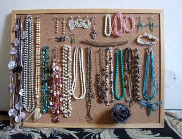 Я рекомендуем для вам ряд идей, какие уверят вам, то что многофункциональное хранение украшений возможно просто осуществить собственными руками! Хранение украшений на пробковой доске Пробковая доска для записок с кнопками — уже готовый настенный органайзер для бижутерии. Если подходящей доски нет — сделайте ее своими руками из винных пробок. Хранение сережек с помощью сетки, канвы, кружев Любой сетчатый материал отлично подходит для хранения сережек. Во-первых, такой органайзер для украшений очень удобен — все серьги висят по парам и вам легко будет найти нужные. Во-вторых, органайзер для сережек выступает как оригинальный самостоятельный де